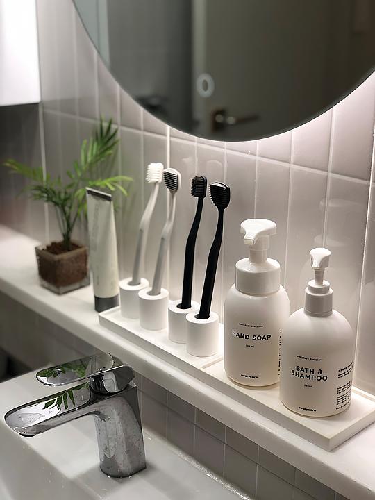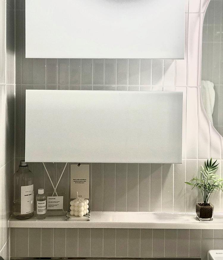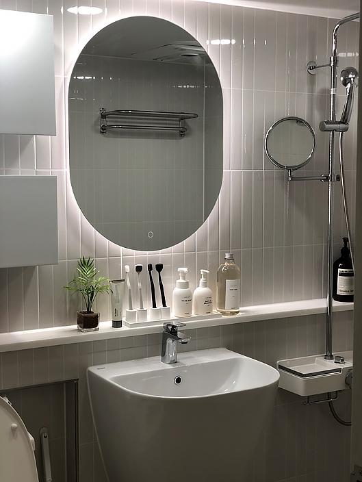 수납장 또한 간결하고 심플해서 욕실에 설치하니 더욱 모던하게 느껴지구요. 플랩장 형식이라 아래 변기에 물건이 빠질 위험이 없어서 좋아요. 타일은 미끄럼방지 타일을 설치해서 물기도 빨리 마르고 아이가 맨발로 욕실을 걸어도 넘어지지 않아서 너무 마음에 들어요.