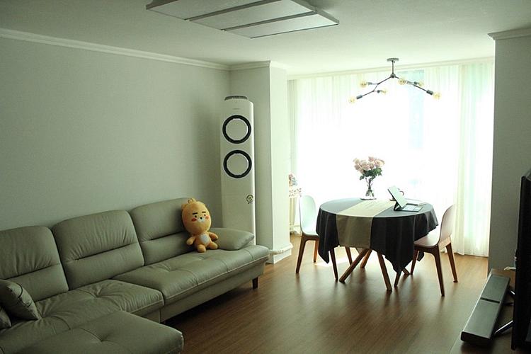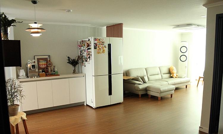 탁 트인 공간을 좋아하고 카페와 꽃을 좋아하는 아내와 벽에 못 박는 걸 싫어하고 소파 앞엔 TV, 소파 옆엔 냉장고가 있길 바라는 남편의 취향을 고스란히 담은 우리 집 전경입니다.^^