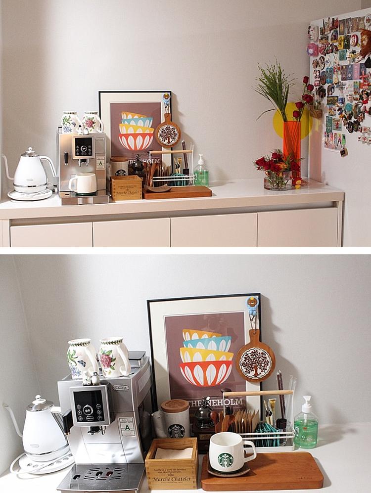 커피를 좋아하는 부부를 위한 홈카페 컨셉의 홈바