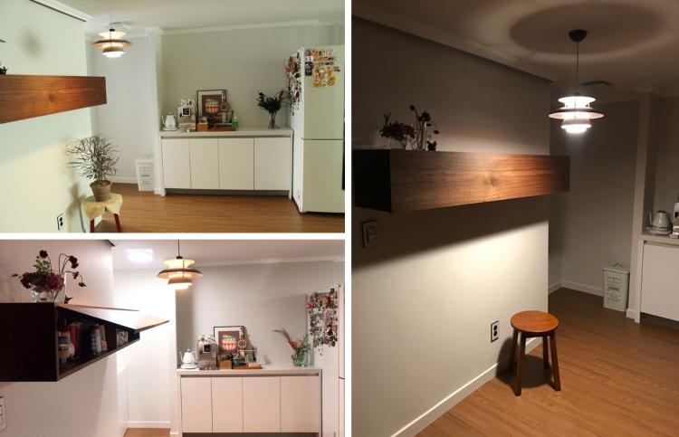 주방이었던 공간에 홈바와 그릇장을 배치해 모던한 홈 카페 느낌을 주고자 했습니다.