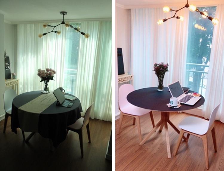 이렇게 저녁시간을 각자의 방식으로 보내지만 함께 있는 걸 좋아하는 우리 부부를 위한 공간 배치입니다. 그리고 거실 원형 테이블에서 바라보는 창밖의 뷰가 은근 이쁜 우리 집이랍니다. 카페에서 작업하는 느낌 그대로 실현한 따로 또 같이 하는 부부의 최애 공간이랍니다.