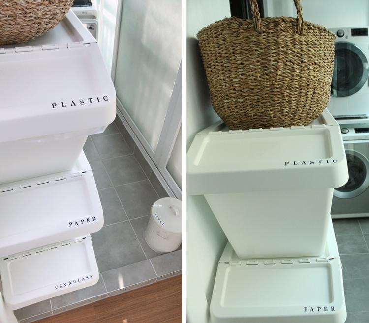 주방옆의 다용도실>- 세탁실 겸 분리수거 정리함 공간으로 활용