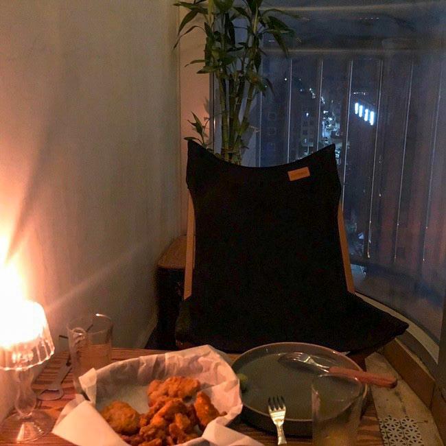 기분 내고 싶은 날이면 원래 외식을 했었는데 베란다 캠핑을 시작한 뒤로는 외식 횟수가 많이 줄었답니다. 음악과 촛불 하나면 레스토랑 부럽지 않아요 ㅎㅎ