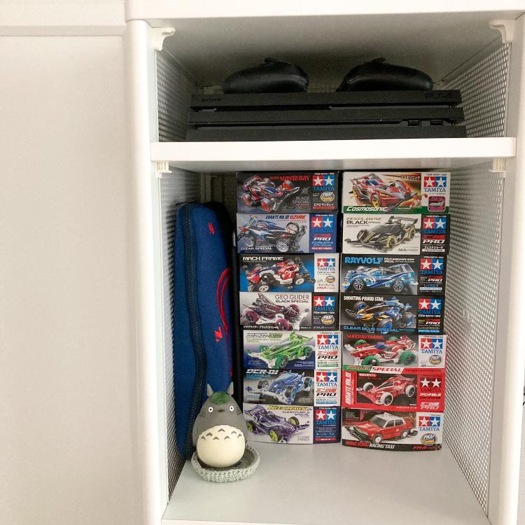 여기는 TV 옆 수납장으로 나름의 문화 존이에요 :) 남편의 플레이스테이션 게임기와 취미로 하고 있는 미니카, 그리고 노트북과 아이패드가 보관되어 있습니다.