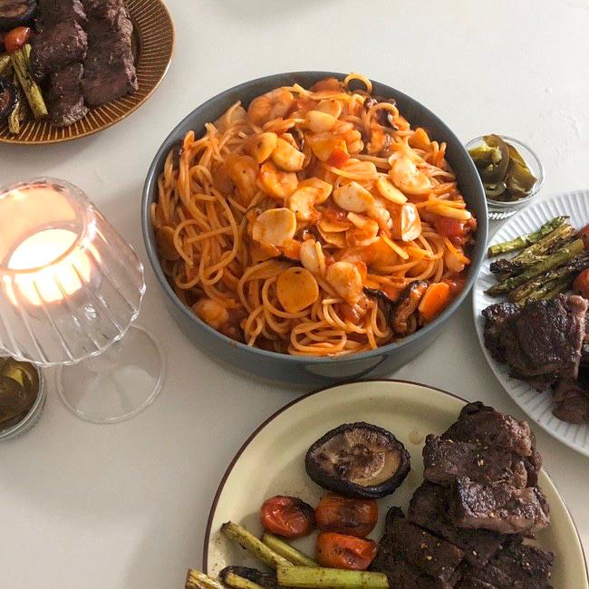 그간 해 먹은 요리 중 몇 가지 올려보아요 ㅎㅎ 입구에서 바로 보이는 게 식탁이다 보니 식탁을 고르는 게 제일 오래 걸렸어요. 세라믹 식탁을 구입했는데 사용하기에도 편하고 관리도 너무 편하답니다.