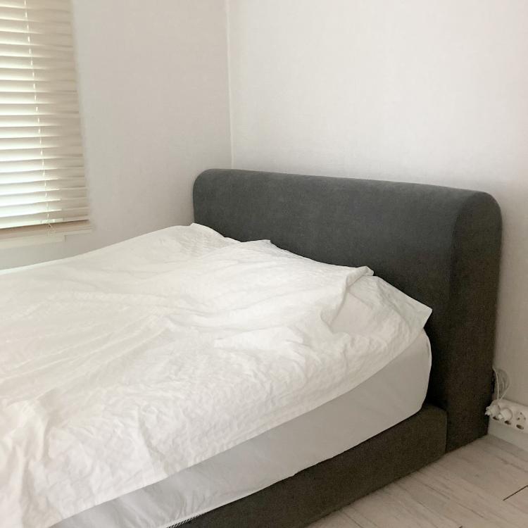 거실과 마찬가지로 안방도 우드 블라인드로 따뜻함을 주고 침대는 패브릭 프레임으로 하여 안방만의 포근함을 지켜주고 싶었어요.
