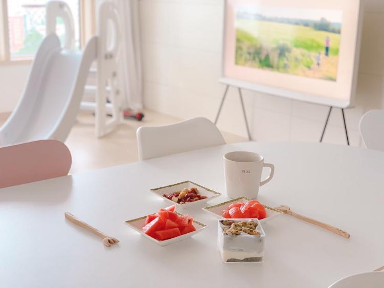 평소에는 티비를 보며 세 식구가 밥을 먹고요. 커피를 마시기도 하고 함께 마주 보며 수다를 떨기도 하죠. 6-8인용 테이블이 있으니 아무래도 소파보다는 좀 더 오랫동안 함께 앉아있는 공간이 되더라고요!