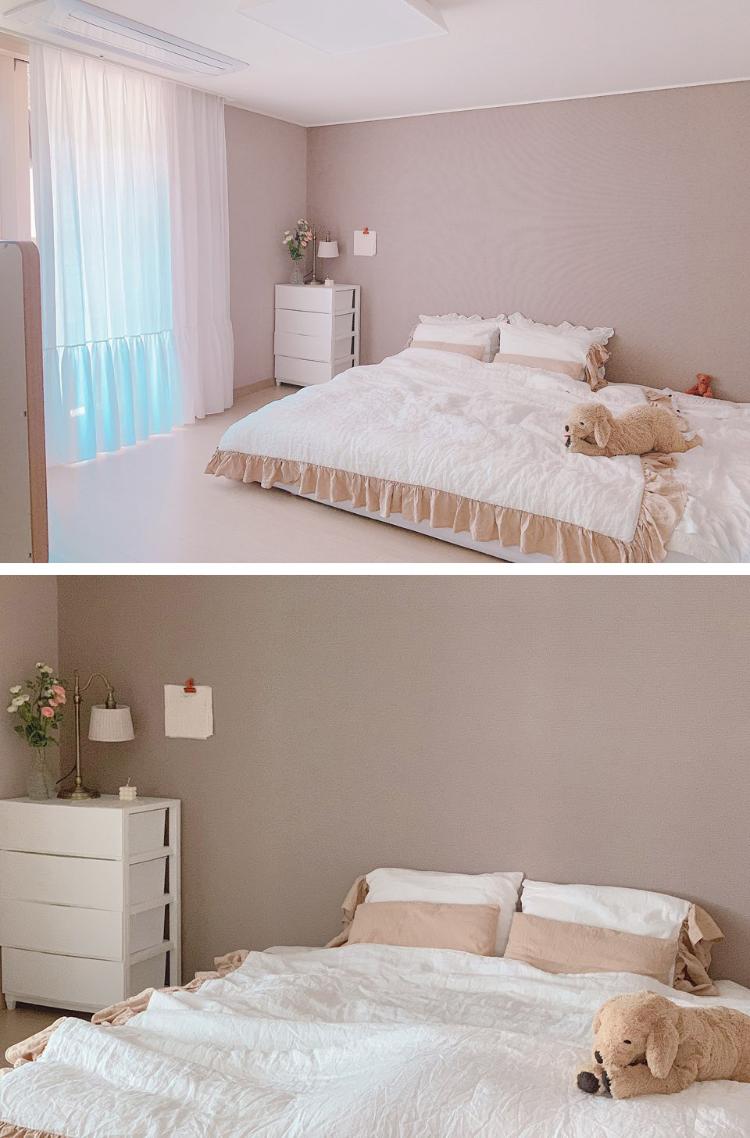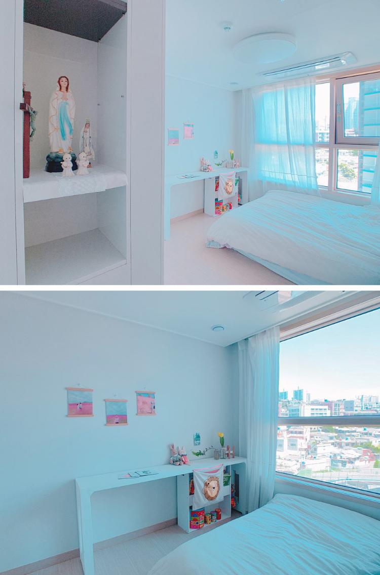 평소에는 이 방 채광이 좋아서 완성샷이나 소품촬영을 하는 곳으로 사용되지만, 손님들이 오시거나 친정 부모님들이 오실 때면 여기방에서 주무시게 해두었어요! 시간이 지나, 아기가 크면 아이방으로 할까 싶어요^^