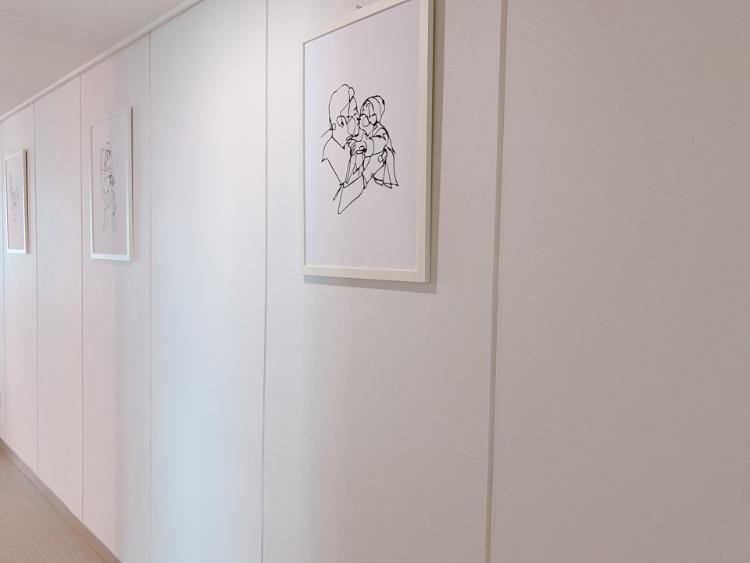 게스트룸을 지나 드레스룸으로 갈 때나, 거실로 갈 때쯤에는 긴 복도가 있는데요. 처음엔 이 복도 벽지 컬러가 그레이 컬러였는데 화이트 벽지로 리모델링을 했어요. 저희 남편이 타투이스트랍니다. 요즘 많이 하시는 라인 타투가 너무 예쁜 거예요.