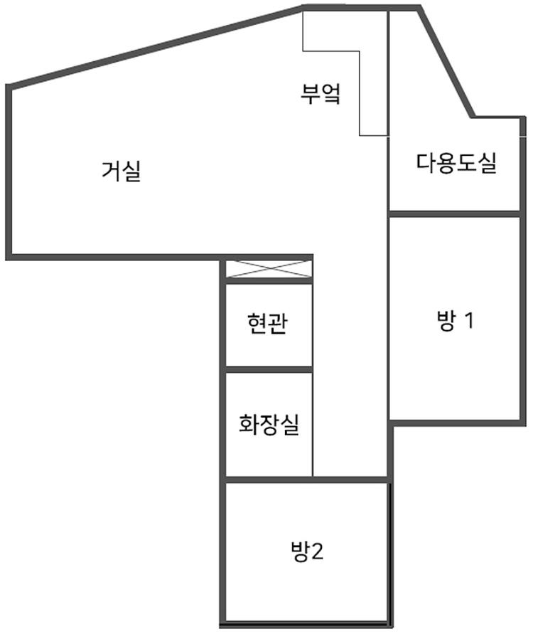 저희 집은 방 2개, 화장실 1개. 투룸 빌라입니다.
