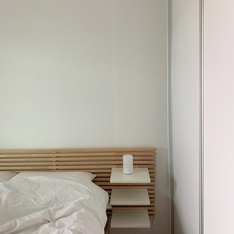 반대편은 미니 가습기를 두었어요. 아로마 오일을 넣어 사용할 수 있어서 자기 전 편안한 향기를 맡으면서 쉬고 있어요.