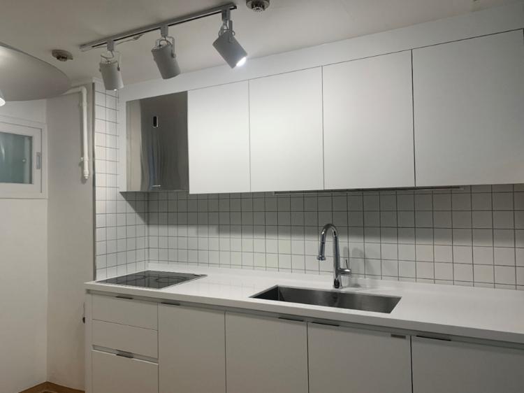 주방 리모델링을 하면서 나는 정말 화이트를 좋아하는구나 생각했죠. 업체 쪽에서 전부다 화이트를 하는 걸 걱정해서 저도 덩달아 걱정도 됐어요. 그렇지만 뚝심 있게 밀고 가는 게 좋은 거 같아요. 덕분에 깔끔하고 어떤 아이템과도 잘 어울리는 주방이 완성되었습니다. 무광+화이트의 조합은 정말 사랑이에요.
