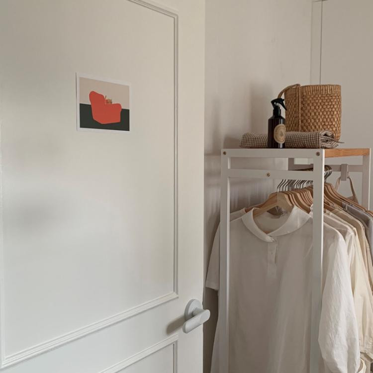 자주 입는 티셔츠나 가디건은 따로 원목 행거에 빼두고 있어요.