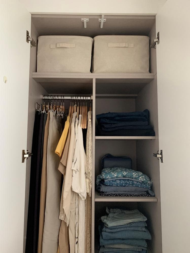 옷장 안에는 원피스와 바지를 수납하고 있어요.
