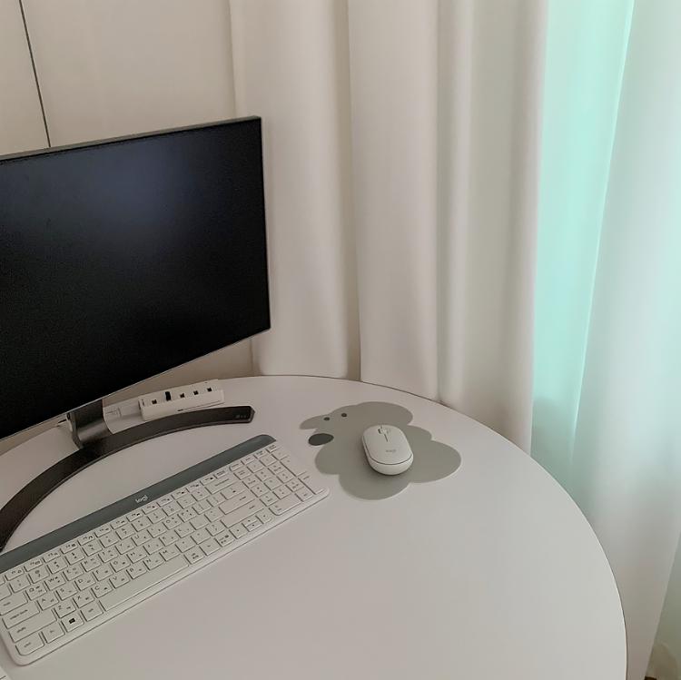 컴퓨터 책상도 화이트 톤으로 통일했어요.