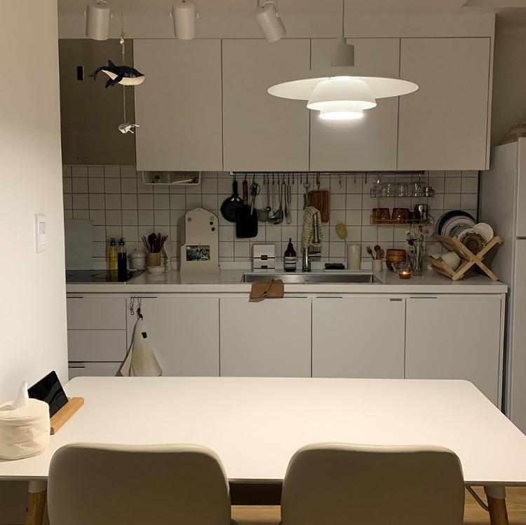 예전엔 주방이 정말 좁아서 식탁을 조리대로 쓰기도 하고 뭘 많이 올려 두었는데, 지금은 온전히 식탁으로 사용해서 깔끔함을 유지할 수 있어요.