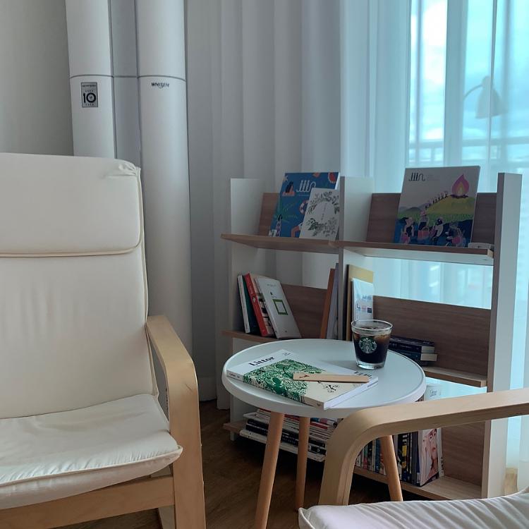 안락의자에 앉아 책을 읽기도 하고 좌식 소파에서 뒹굴뒹굴하기도 해요.