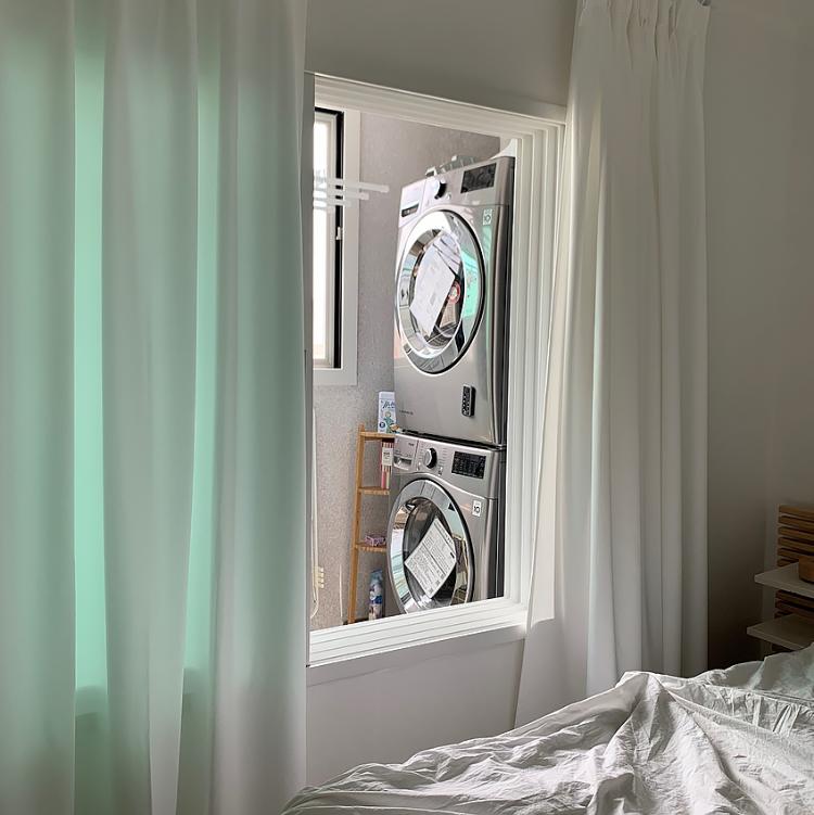 침실방 뒤에 베란다에는 세탁실이 있어요. 세탁실은 침실방에서 보이는 게 거의 다랍니다