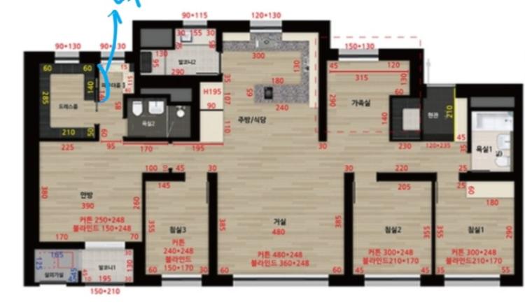 처음엔 없었던 문을 하나 만들어서 안방 벽면에 두 개의 문이 있는데요.