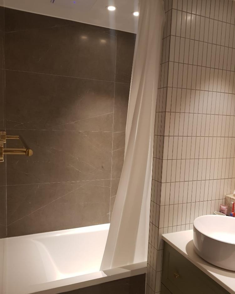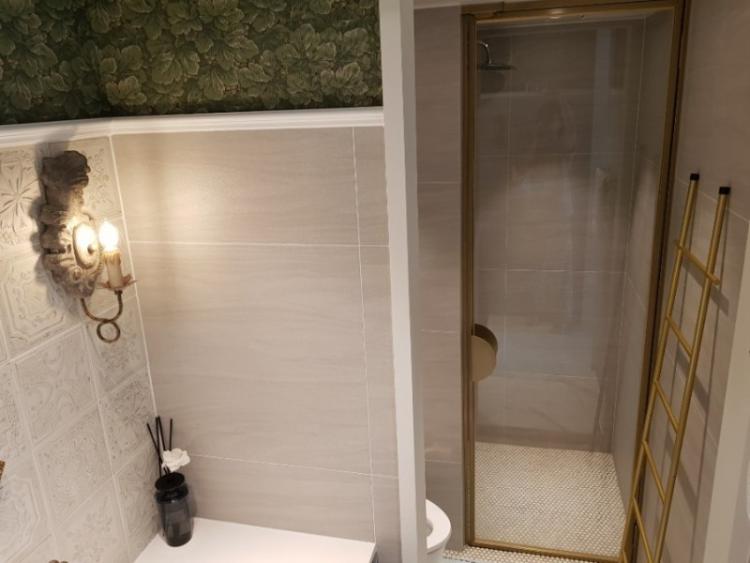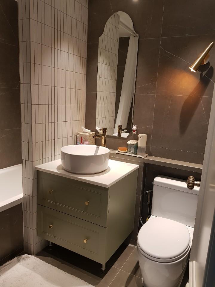 우리 린건이가 주로 사용하는 욕실 밝게 화이트&골드 조합으로 할까 하다가 변경해서 완성했는데 은은하면서도 고급스러운 듯~~ 욕조에서 샤워할 때 물 튀기지 말라고 가벽도 있어요.