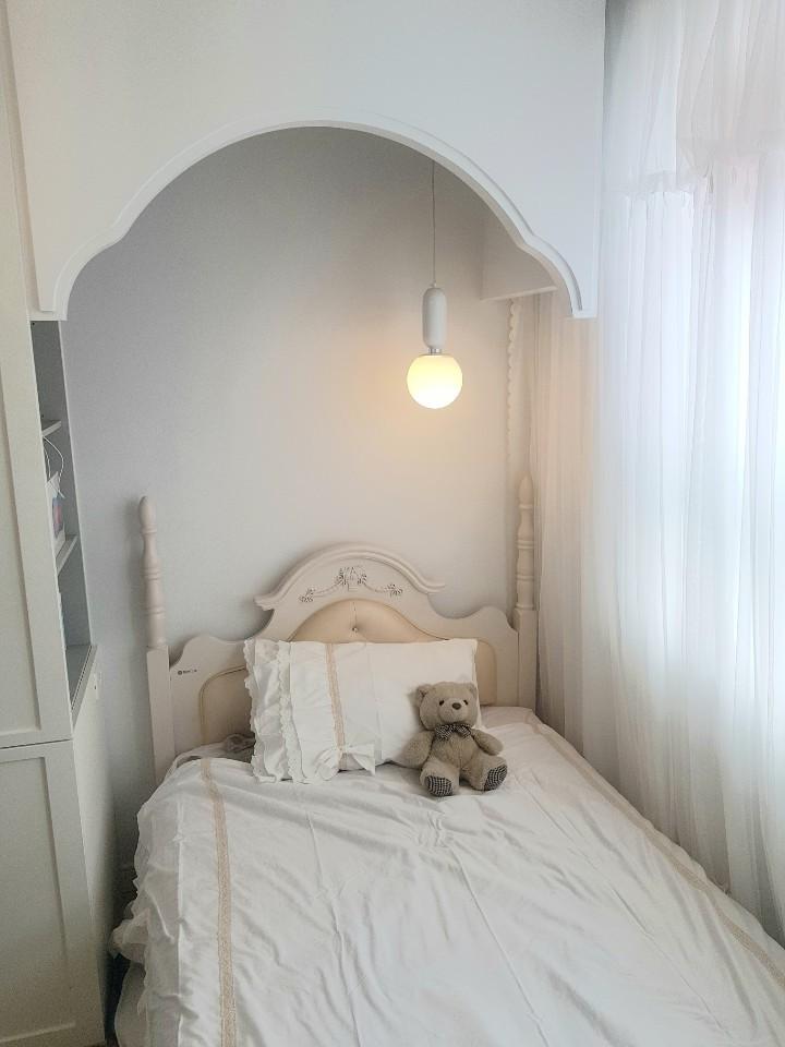 자기방 꾸미는데 신경 많이 써달라고 요구했더니 침대 위 아치와 붙박이장을 만들고 사랑스러운 핑크 샹들리에로 러블리한 방으로 변신~ 너무너무 마음에 든다며 어찌나 좋아라~하던지 뿌듯하더라고요.