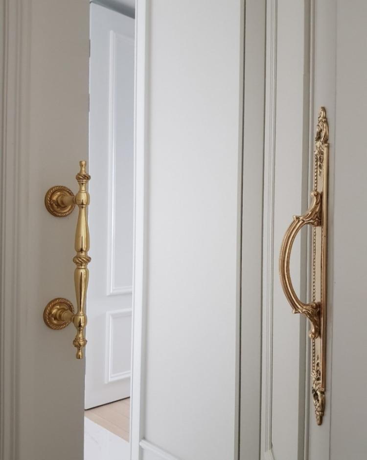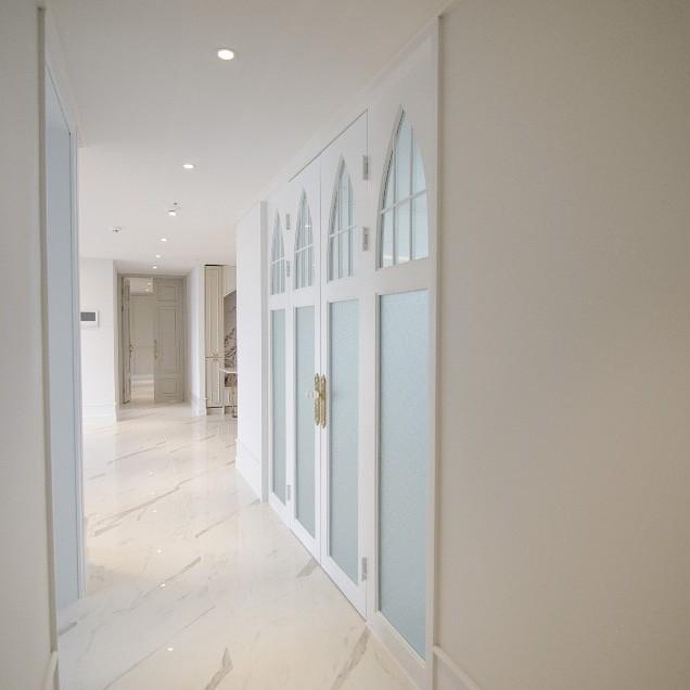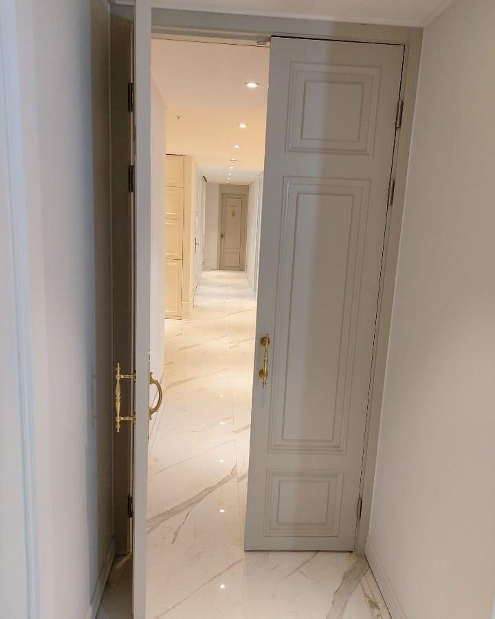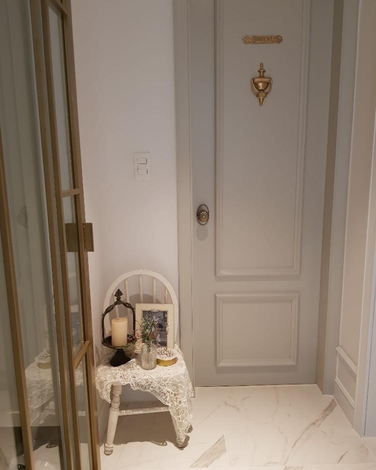 대리석 바닥으로 쫘악~~ 마루와 대리석 중에 무지 고민했었는데 남편님께서 대리석을 원하셔서 협의 끝에 결정했어요:) 깨끗한 화이트로 프렌치 함과 심플함이 공존하는 손잡이들과 인테리어 실장님께서 직접 디자인하신 골드 중문으로 집들이를 시작해볼게요.