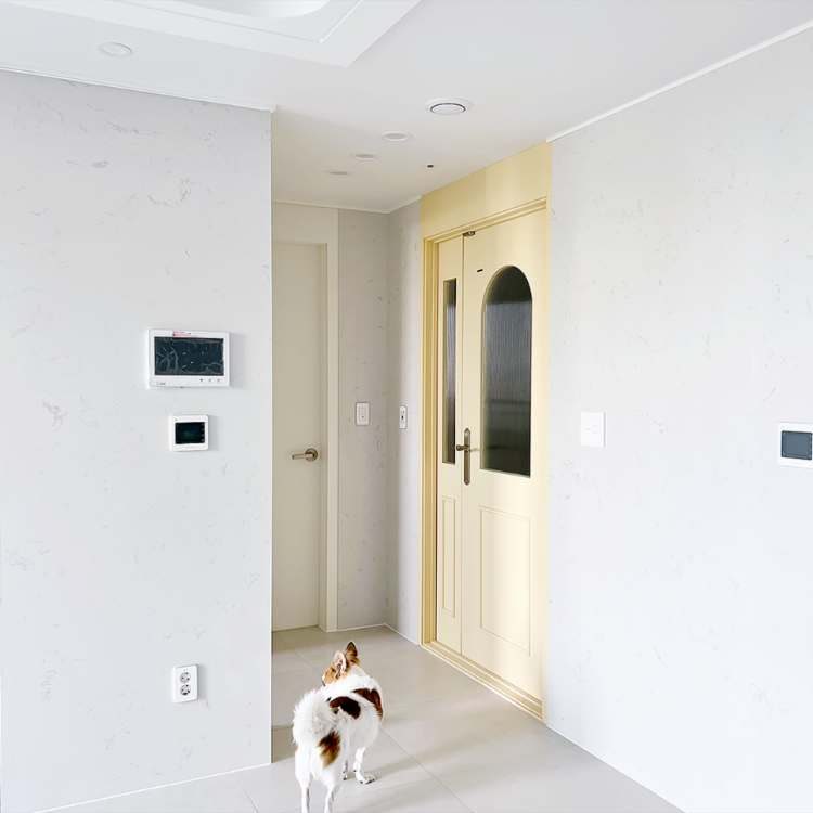 버터옐로우 컬러의 현관