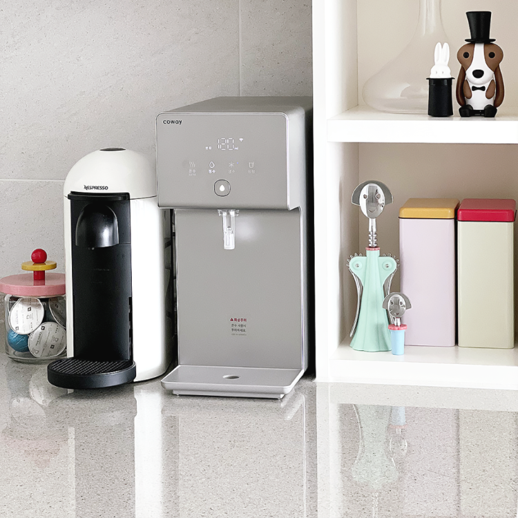 주방에도 알록달록한 소품들로 컬러 포인트를 주었답니다. 정수기 오른쪽으로는 오픈장이 4칸 있어서 이 공간에도 귀여운 소품들을 채워봤어요.