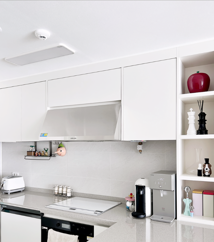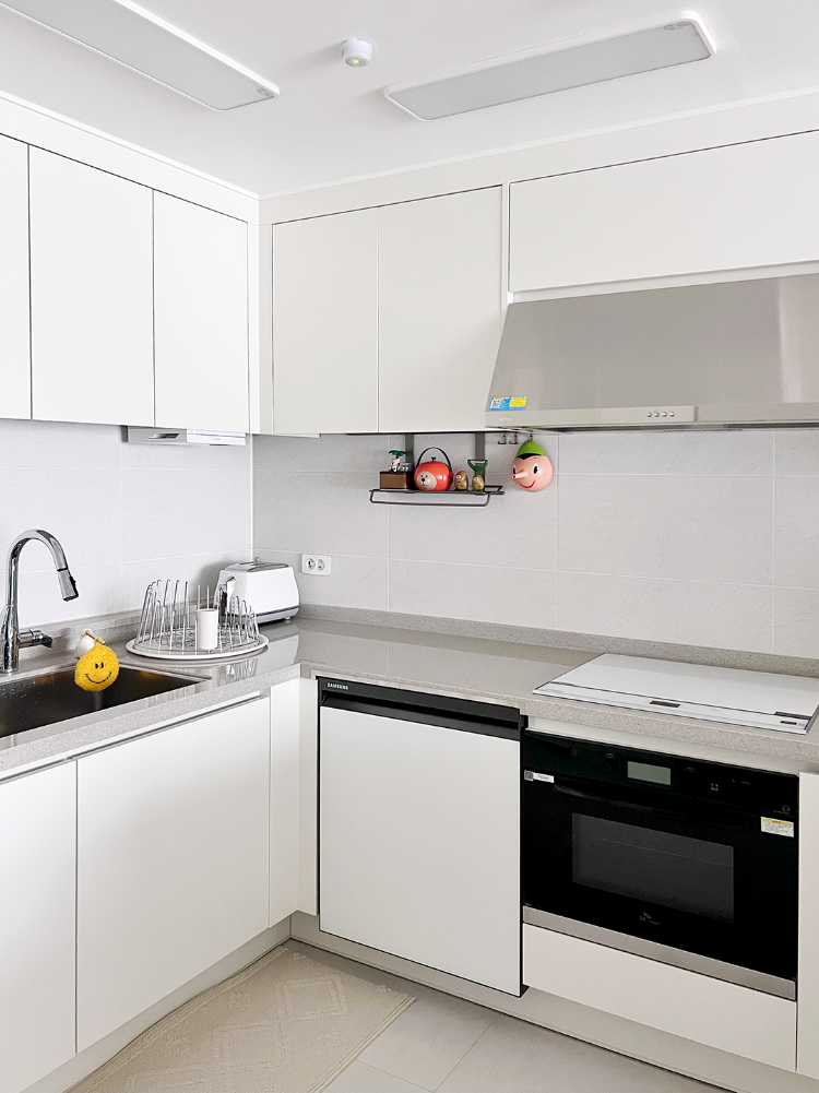 그리고 주방이에요. 주방 가전도 모두 화이트로 통일해서 밝은 느낌을 연출해 보았어요.