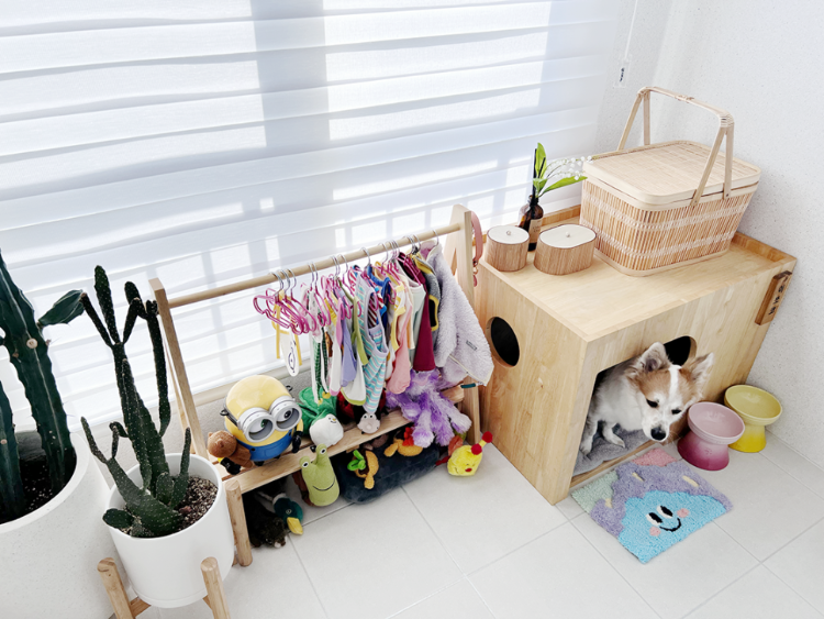 그리고 안방 베란다는 이렇게 쪼코를 위한 공간! 날씨가 좋은 날엔 문 열어두면 쪼코가 여기를 왔다갔다하면서 휴식을 취하곤 한답니다.
