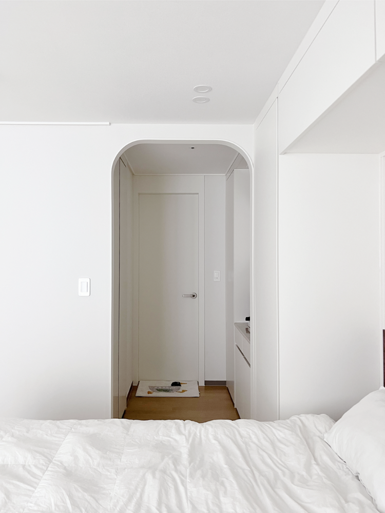 화장대쪽으로 가는 공간은 이렇게 아치형 문으로 시공해서 부드러운 느낌을 주었고 화장대를 마주보고는 작은 드레스룸이 있어요.