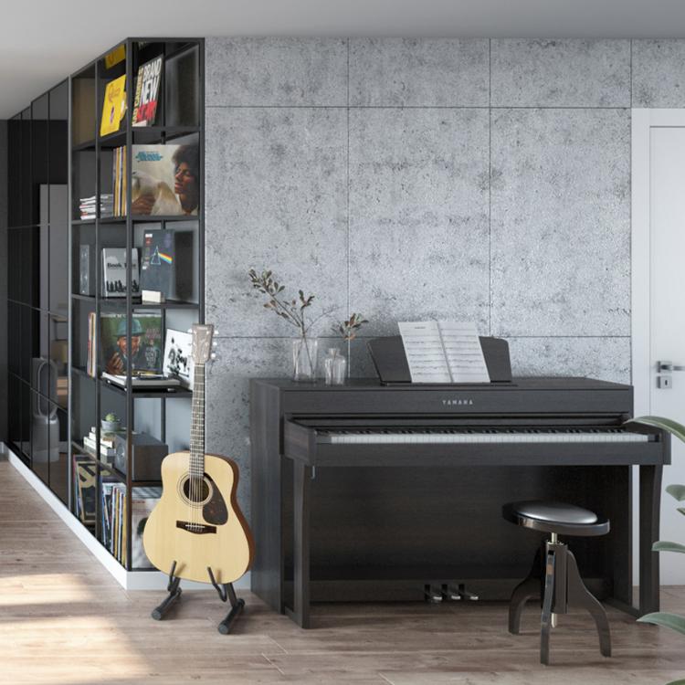 콘크리트 벽과 블랙 피아노 정말 잘 어울리지 않나요~? 블랙 피아노와 기타로 완성한 저의 작업 공간입니다. 사실 연습실에서 더 많이 작업을 하기 때문에 인테리어 효과가 더 크지만…ㅎㅎ 헤드셋 끼고 나이트용으로 부분 연습하거나 하기에는 딱 좋은 모델로 가성비 높은 모델로 구매해서 구비해뒀습니다. 옆에 기타는 취미생활도 배우고 있는데 처음엔 어려웠는데 연습을 하다 보니 재미있어지더라고요. 나중에 친구들과 여행 갈 때 꼭 필수로 가져가야겠어요~