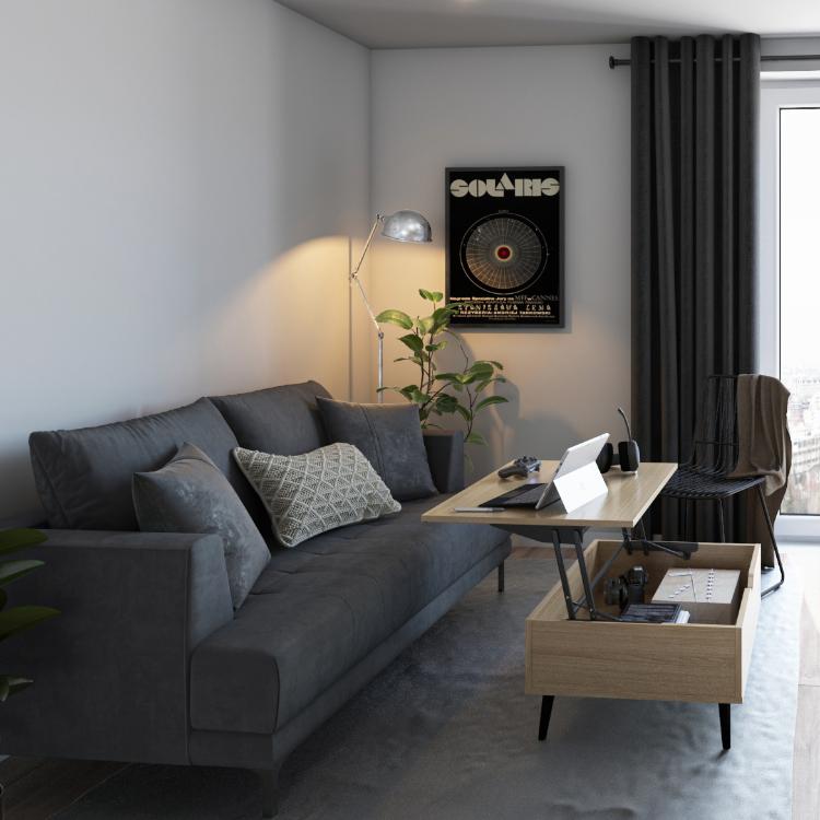 소파는 관리하기 쉬운 기능성 포르테 소파로 구매했어요. 대부분 소파에서 휴식시간을 취하곤 하는데, 제가 제일 좋아하는 PS4로 게임을 하곤 하죠~가끔 공부하다가 머리 식힐 때 정말 좋은 아이템이에요:) 두 번째는 은은하게 스탠드를 켜놓고 커피를 마시면서 영화 보는 시간이 제일 평화로운 것 같아요.