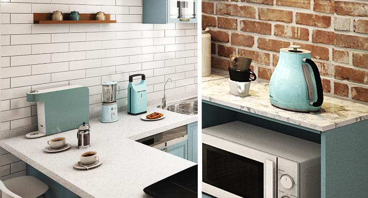 올해 트렌드 컬러 중 하나가 민트 색인 것 알고 계셨나요? 주방을 꾸밀 때만 해도 몰랐는데 어떻게 잘 맞아들었어요ㅎㅎ 하얗거나 까맣던 가전이 요즘 형형색색 다양하게 나와 특별한 인테리어가 아니어도 작은 가전 하나 만으로도 주방 속 활력을 더해줄 수 있는 것 같아요.
