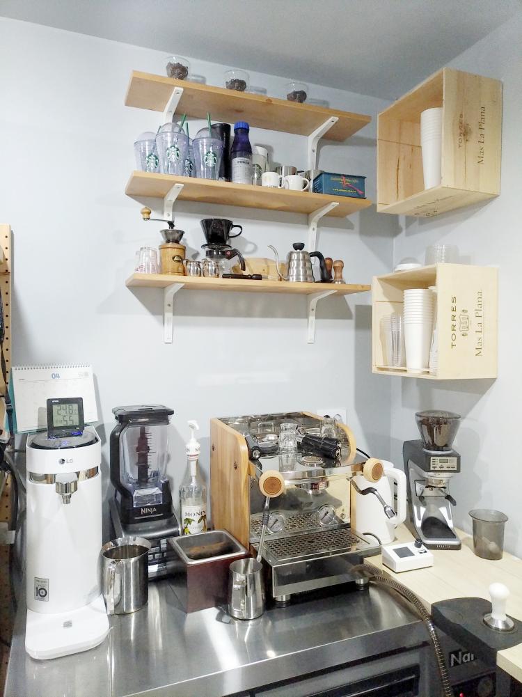 저희 부부가 가장 많이 이용하는 공간입니다. 커피를 정말 좋아해요. 결혼해서 지금까지 5년간 핸드드립 커피를 내려 마시다가 최근에 에스프레소 머신을 들였어요.