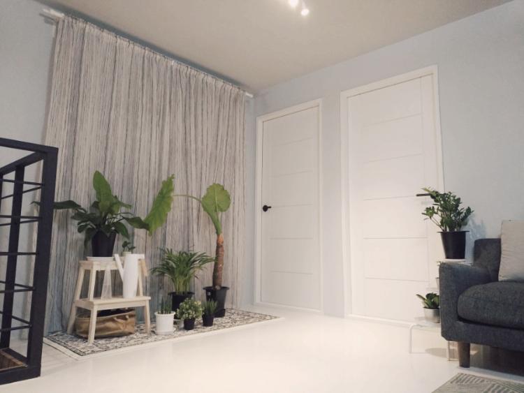 거실은 남향으로 큰 전면창을 냈어요. 그래서 집 안으로 햇빛이 참 잘 들어온답니다. 역시나 전면 창 앞 자리는 화분들이 차지했어요. 서울에 살 때는 여유가 없어 집에서 식물을 키울 엄두가 나지 않았었는데 전원생활을 하다 보니까 집에 하나 둘 화분을 들여놓게 되더라고요.