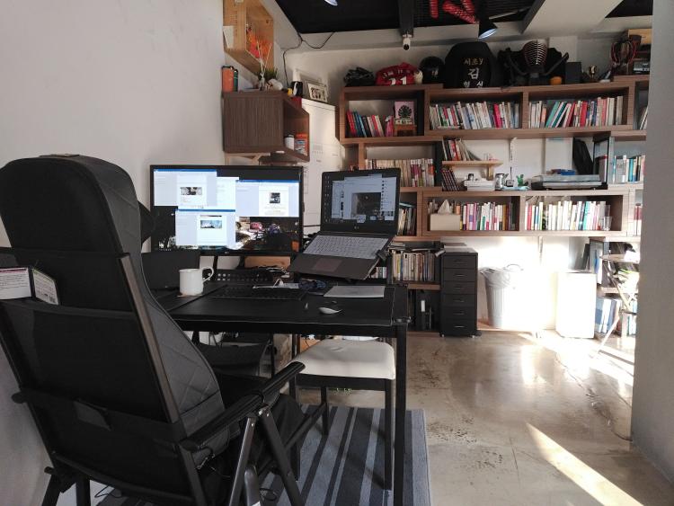 프리랜서로 집에서 일을 하는 저를 위해 남편이 꾸며준 서재입니다.