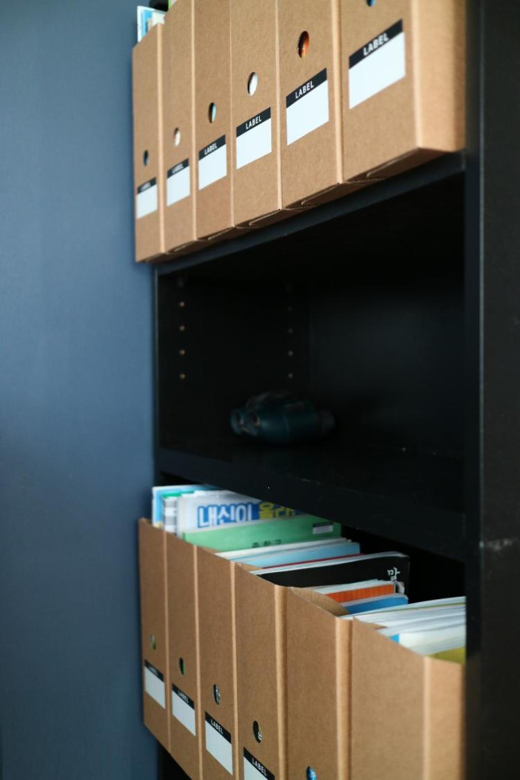 남자아이들은 사용하는 물건이 별로 없어서 수납력이 그렇게 필요하진 않더라고요. 책들은 종이 파일에 전부 넣어주었고요.