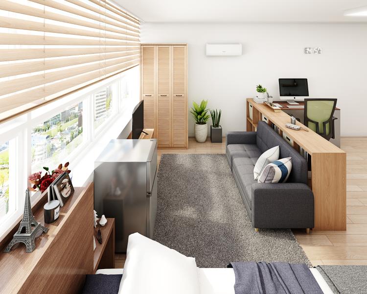 수납장으로 생활공간 분리한