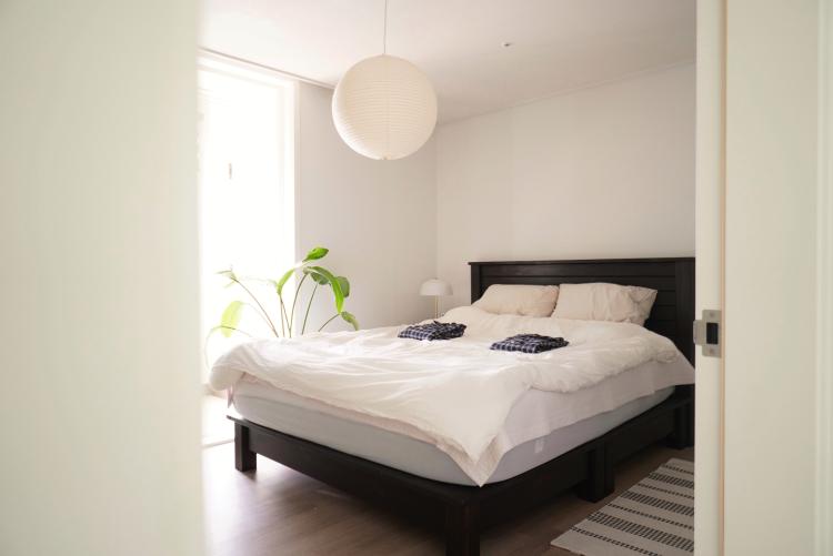 자칫 심심해 보일 수 있었던 침실이 조명 하나로 감각적인 공간이 되었지요? 😊