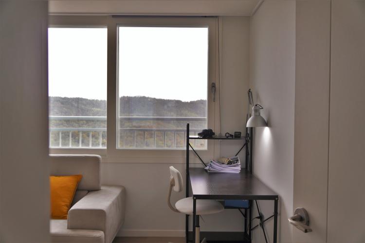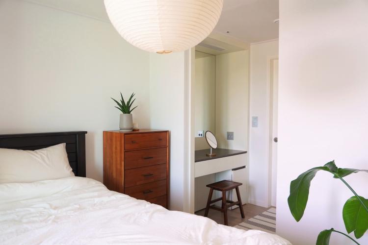 이 곳 역시 거실과 같은 방향으로 창이 있어 창문 가득 하늘과 산의 모습을 감상할 수 있답니다. 저희는 이 곳에 소파와 작은 책상을 두고 사용 중인데요, 소파에 누워 창 밖을 보면 창문 가득 하늘이 들어와 시시각각 변하는 하늘과 구름, 그리고 달을 볼 수 있답니다. 이 방에서 소파에 누워 하늘을 보며 잠시 멍하게 있는 시간도 좋아해요!