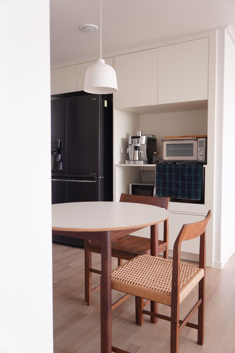 저희 부부가 매일 아침과 저녁 식사를 하는 다이닝 공간입니다. 단순히 식사만 하는 장소가 아닌, 각자의 하루 일과를 이야기하고 또 들어주는 따뜻한 공간이지요. 소박하지만 따뜻한 음식과 함께 서로의 온기까지 느낄 수 있는 공간입니다.
