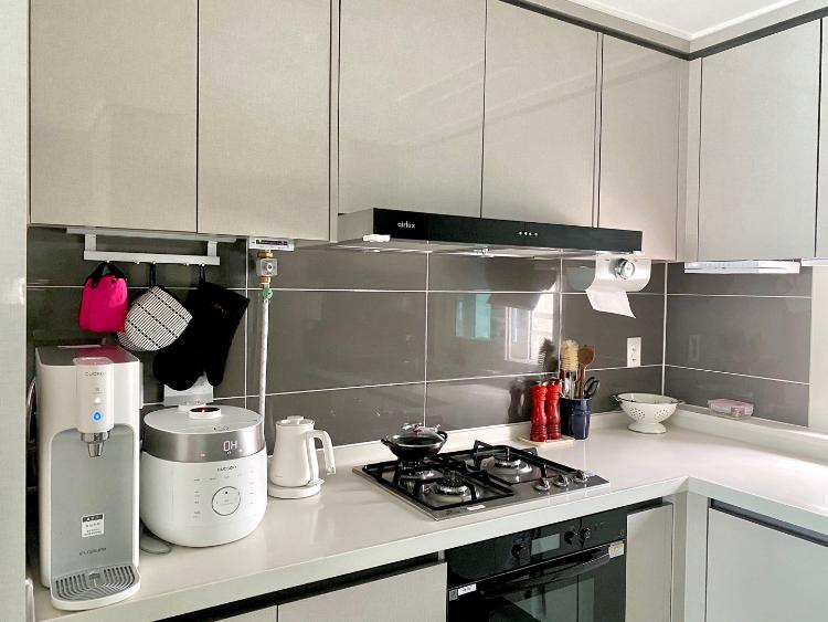 깔 맞춤 하는 것을 좋아해서 주방에 내놓고 사용하는 소형가전은 올 화이트 컬러입니다. 압력밥솥을 고를 때도 기능보단 디자인에 초점을 맞췄어요.