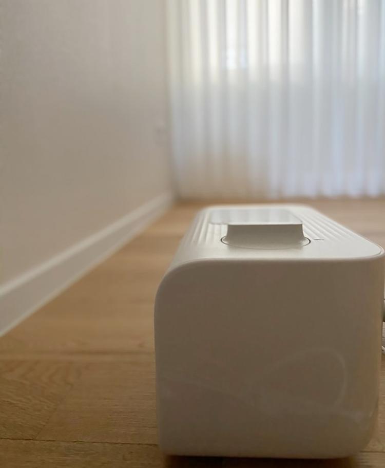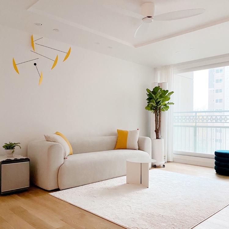 소파 옆에 있는 큐브 공기청정기는 가구인 듯 가전인 듯 조화롭게 잘 어울릴 뿐만 아니라, 20평대 거실에 딱 적당한 크기로 훌륭히 제 역할을 다해주고 있어요.