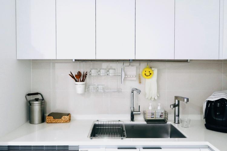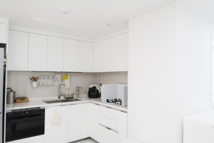 주방은 조리 공간을 최대로 쓸수 있도록 했어요, 위에 밥솥이나 다른 가전을 올리지 않고 커피 머신기만 두었어요.