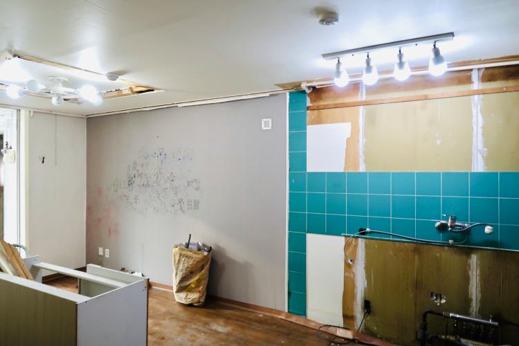 기존의 주방 상태에요, 오래토록 교체되지 못한 주방 타일, 벽수전 등 인테리어를 안할수가 없었어요.