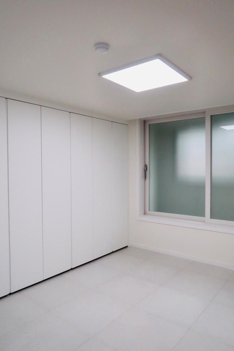 그래도 창문은 로이유리 이중창으로 교체하여 전보다는 덜 춥더라구요. 기존에 아이가 지내던 방이라 벽이 화려했는데 여기도 역시나 화이트로 깔끔하게 도배했구요.