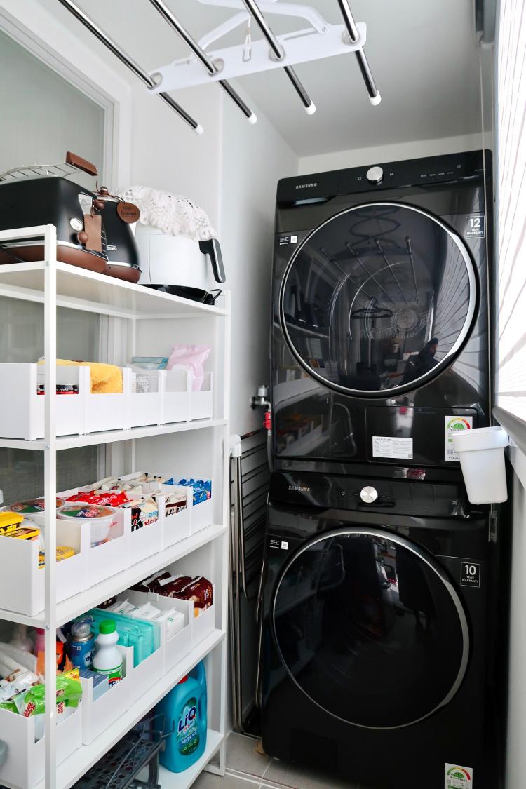25평 복도식아파트 평수에 비해 베란다 안쪽이 엄청 큰데 세탁실로 함께 사용해야 했기에 활용력을 높이기 위해 팬트리로 만들어주기로 했어요.