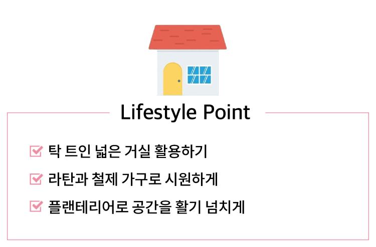 거실 속 가구들은 특히 더 ‘여름 인테리어’에 맞는 제품들로 선택했어요. 여름과 어울리는 가구의 소재는 원목, 라탄, 철제, 유리 등이 있어요. 자연의 느낌 그대로를 살려 내추럴한 감성을 살리거나, 유리나 철제같은 시원한 소재로 모던한 느낌을 적절히 더해보는 것도 좋아요.