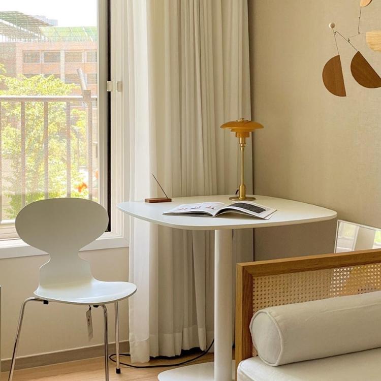 그래서 우드로 선택하게 된 이유도 있는데 배치하고 난 후 컬러가 잘 어우러지면 더 만족스럽더라구요. 이렇게 창가앞에서 가끔 식사도 하고 컴퓨터도하고 커피도 마시다 보니 창가 앞에 테이블은 포기 할 수가 없어요